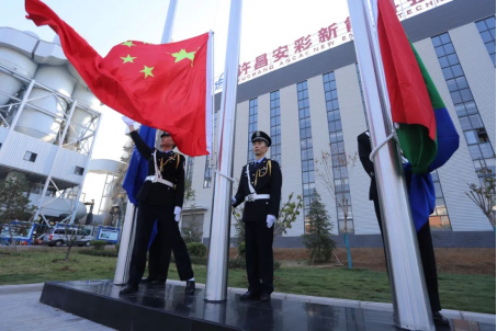 在升旗儀式上,許昌安彩董事長楊建新向在項目建設(shè)中給予支持幫助的各位領(lǐng)導(dǎo)、辛勤付出的各位同事及家屬表示衷心的感謝。他表示,許昌安彩的建設(shè)者們在公司領(lǐng)導(dǎo)的正確指引下,頂住壓力、爭分奪秒,終于實現(xiàn)滿產(chǎn)達效,跑出安彩項目建設(shè)新速度。截至目前,公司各項工序運轉(zhuǎn)正常,各項指標均達到并超過科研設(shè)計水平。這張來之不易的“成績單”是所有許昌安彩人拼出來、干出來的,是落實安彩高科“一核四極”發(fā)展戰(zhàn)略、傳承安彩“十大精神”的集中體現(xiàn)。我們將堅持黨建領(lǐng)航、文化鑄魂,以高質(zhì)量黨建推動企業(yè)高質(zhì)量發(fā)展,堅決貫徹安彩高科指示,推動一期項目穩(wěn)定盈利,加快二期項目盡快落地,以優(yōu)異成績?yōu)樽鎳鴳c生、為黨的二十大獻禮。